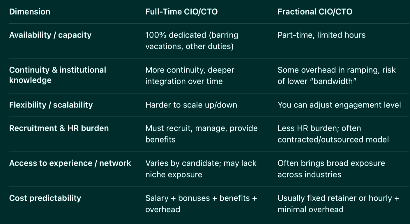 Let’s be real — not every business needs (or can justify) a full-time CIO or CTO. But every business needs smart tech leadership. That’s where fractional comes in.